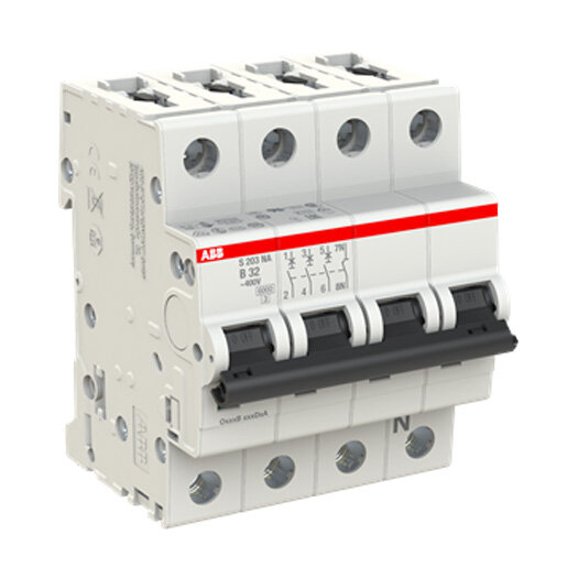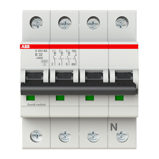 Productinformatie "ABB Installatieautomaat B32 3P+N 6 kA "S203" (krachtgroep)"