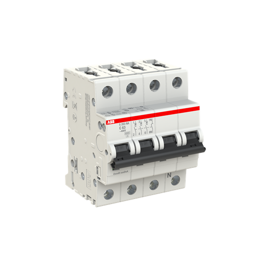 Productinformatie "ABB Installatieautomaat C63 3P+N 6 kA "S203" (krachtgroep)"