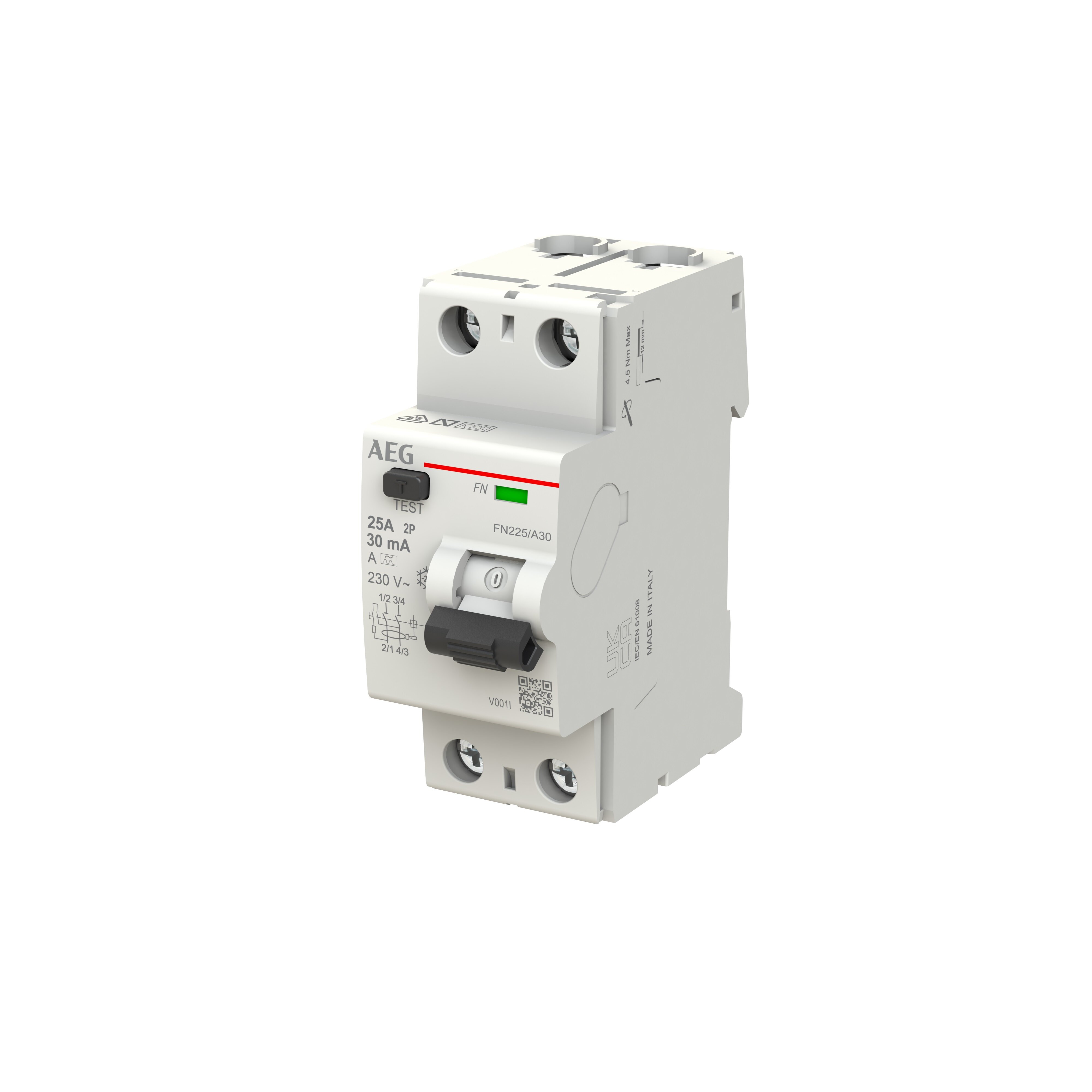 Productinformatie "AEG Aardlekschakelaar 2P 25 A, Type A, 30mA "FN225""