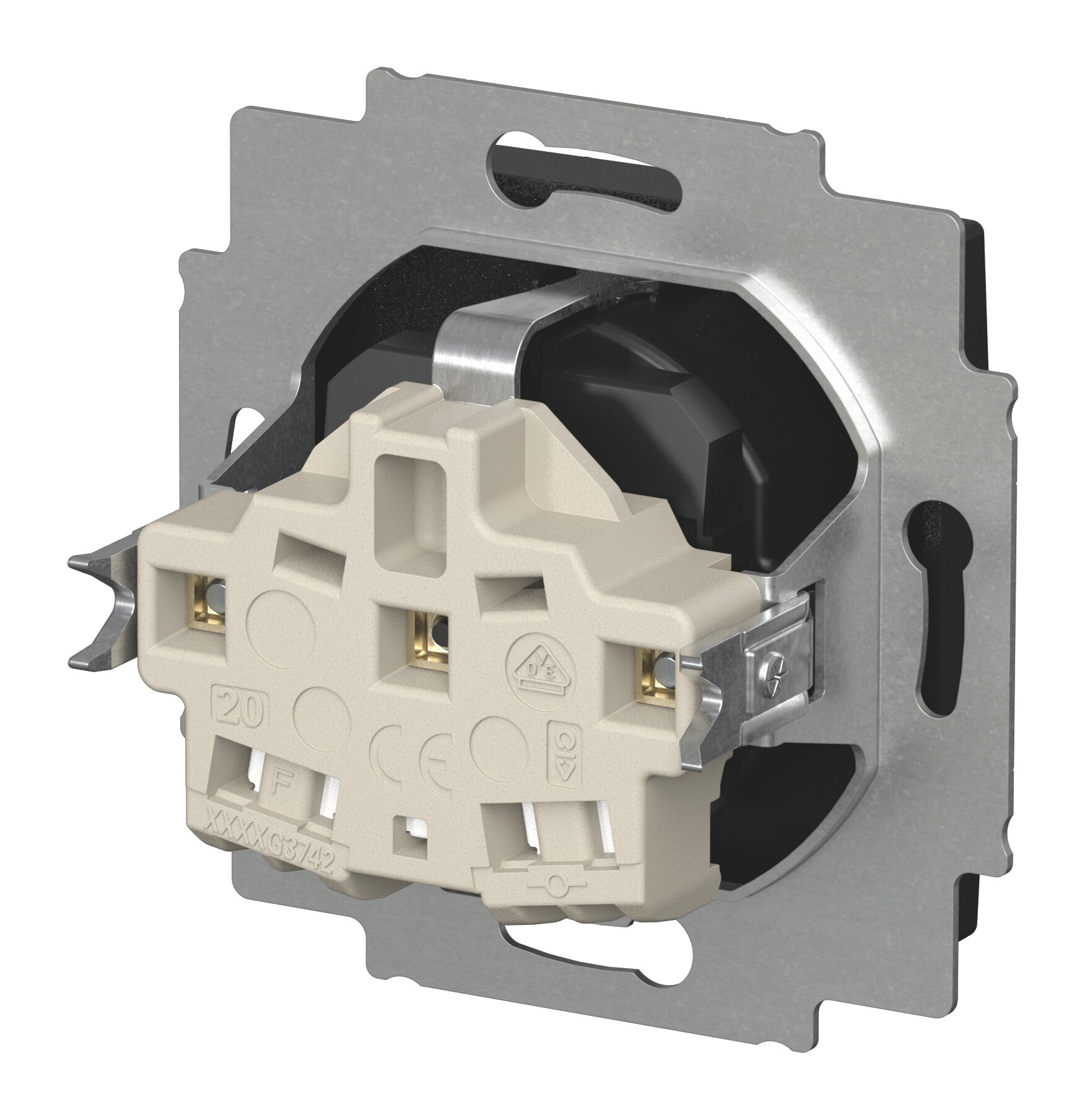 Wandcontactdoos met randaarde met verhoogde contactbeveiliging. Met stekkeraansluiting. 2-polig (2 P + E) balans SI alpinewit.