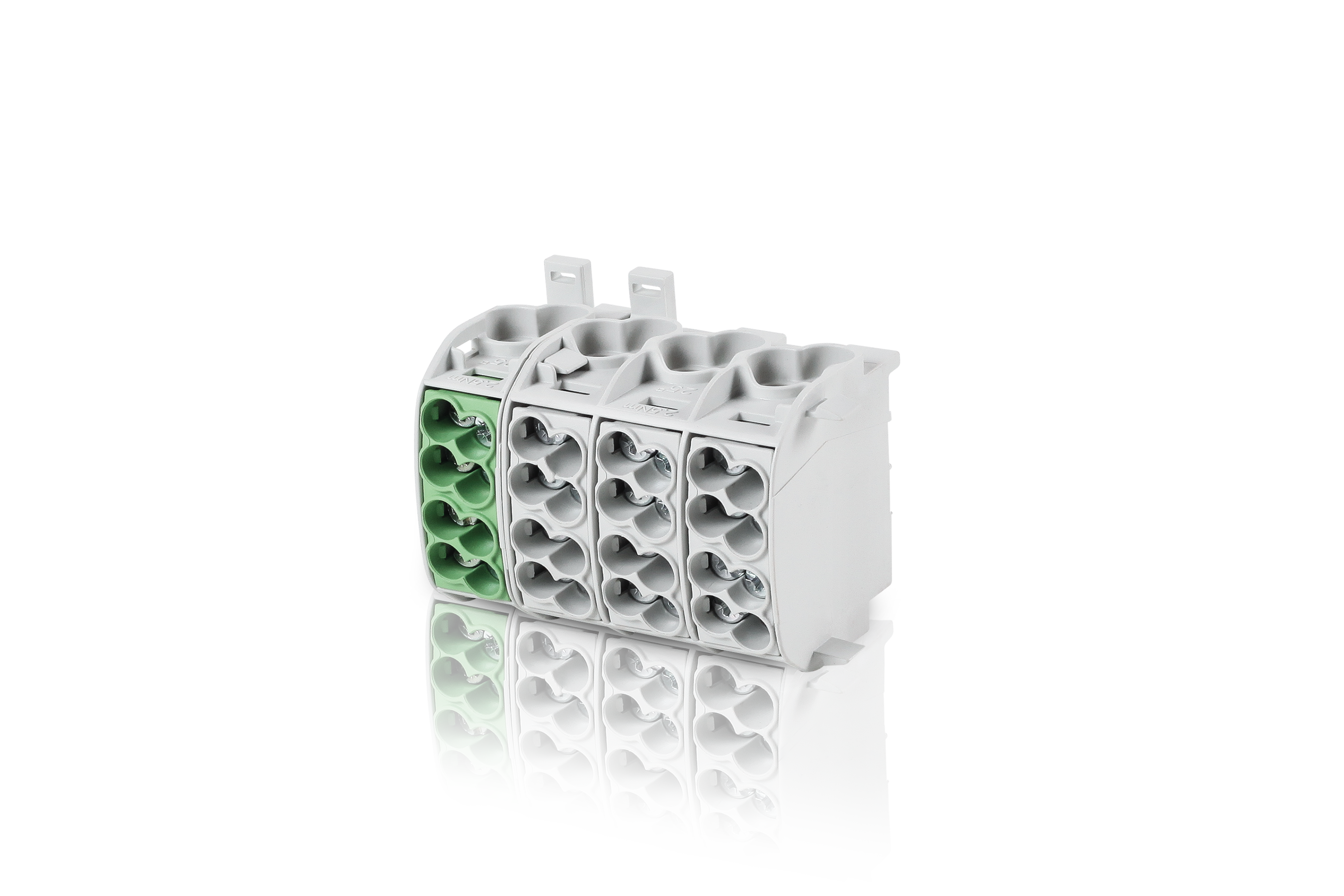Productinformatie "F-tronic hoofdaansluitklem 25 mm² 4-polig grijs/ groen"