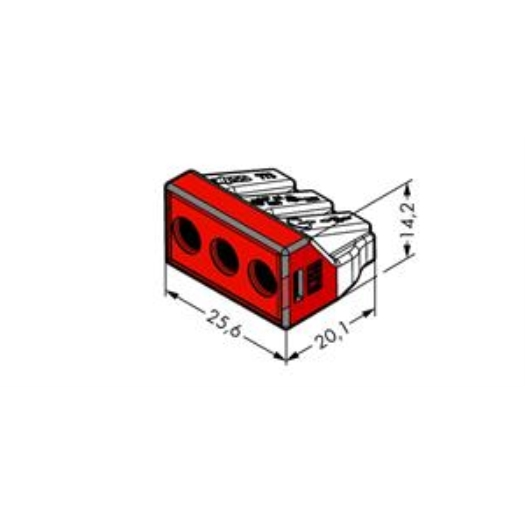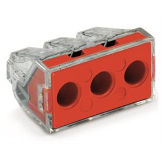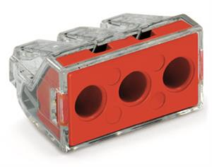 Productinformatie "Lasklem WAGO "773" 3 x 2,5 - 6,0 mm² transparant / rood"