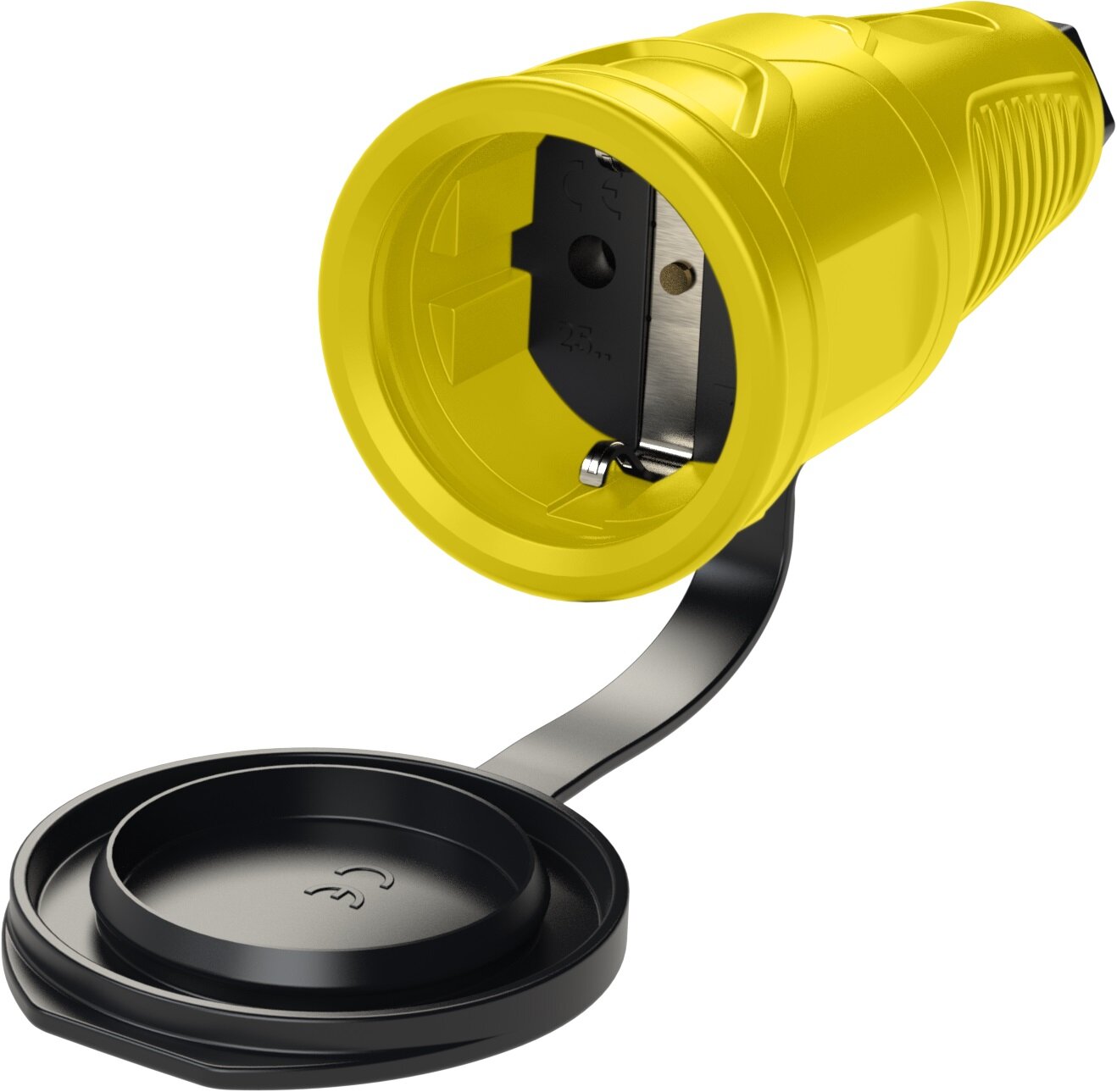 Productinformatie "SIROX massief rubberen contrastekker met deksel op riem geel volrubber"