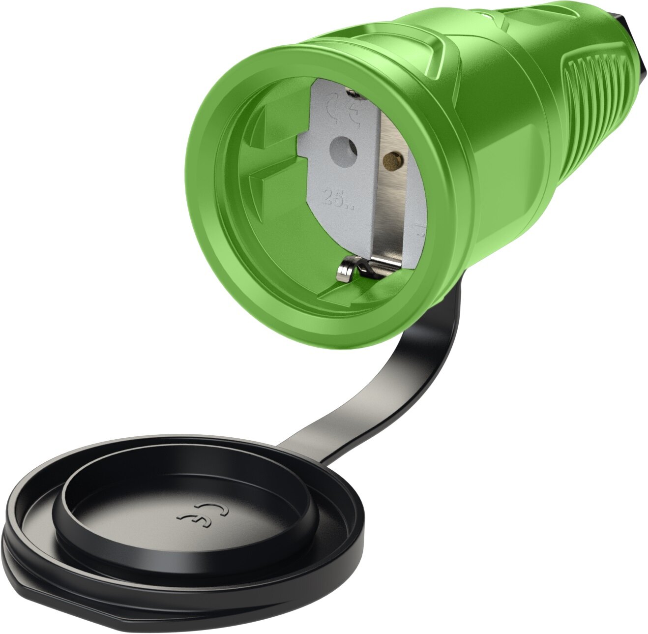 Productinformatie "SIROX massief rubberen contrastekker met deksel op riem groen volrubber"