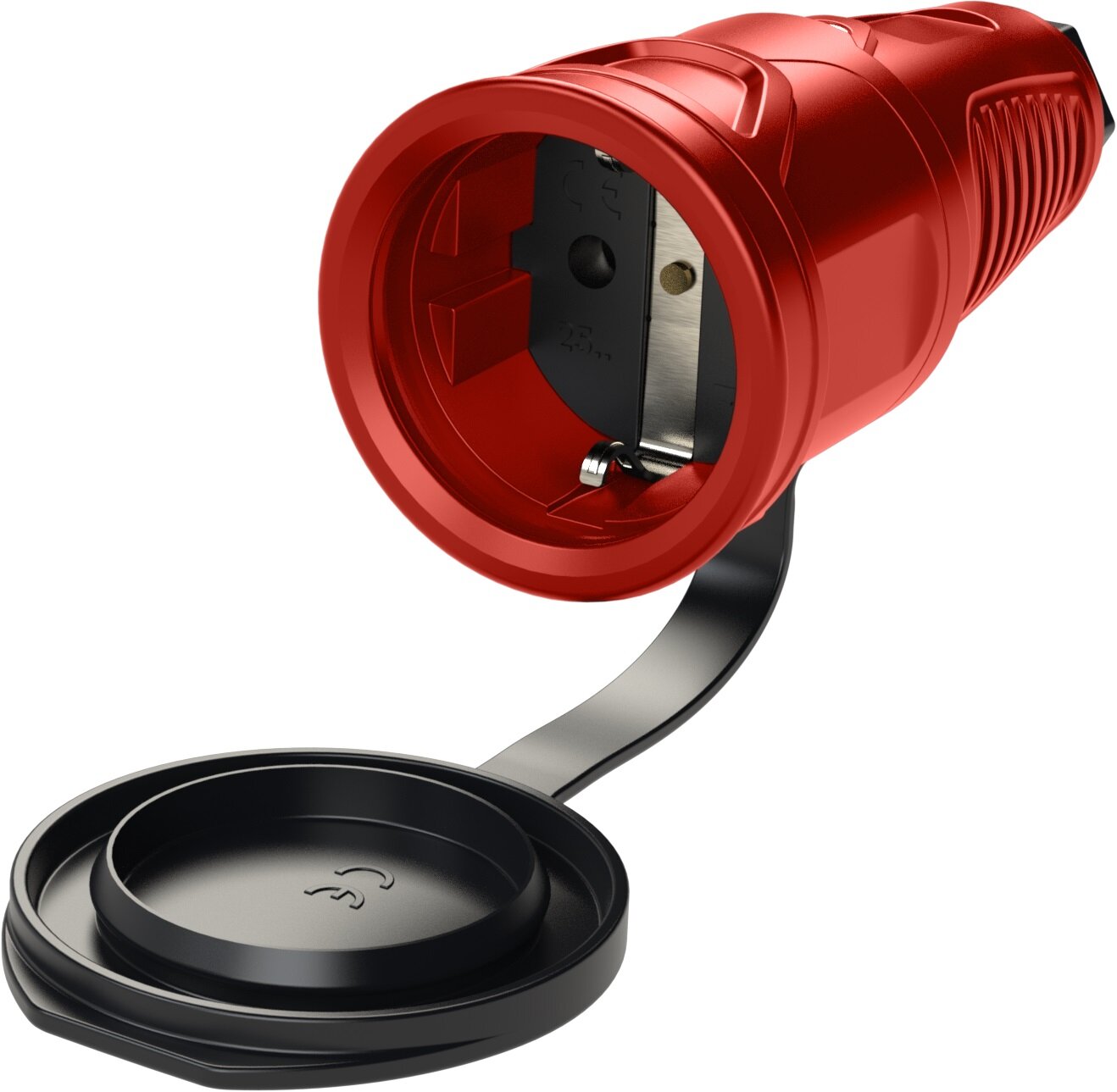 Productinformatie "SIROX massief rubberen contrastekker met deksel op riem rood volrubber"