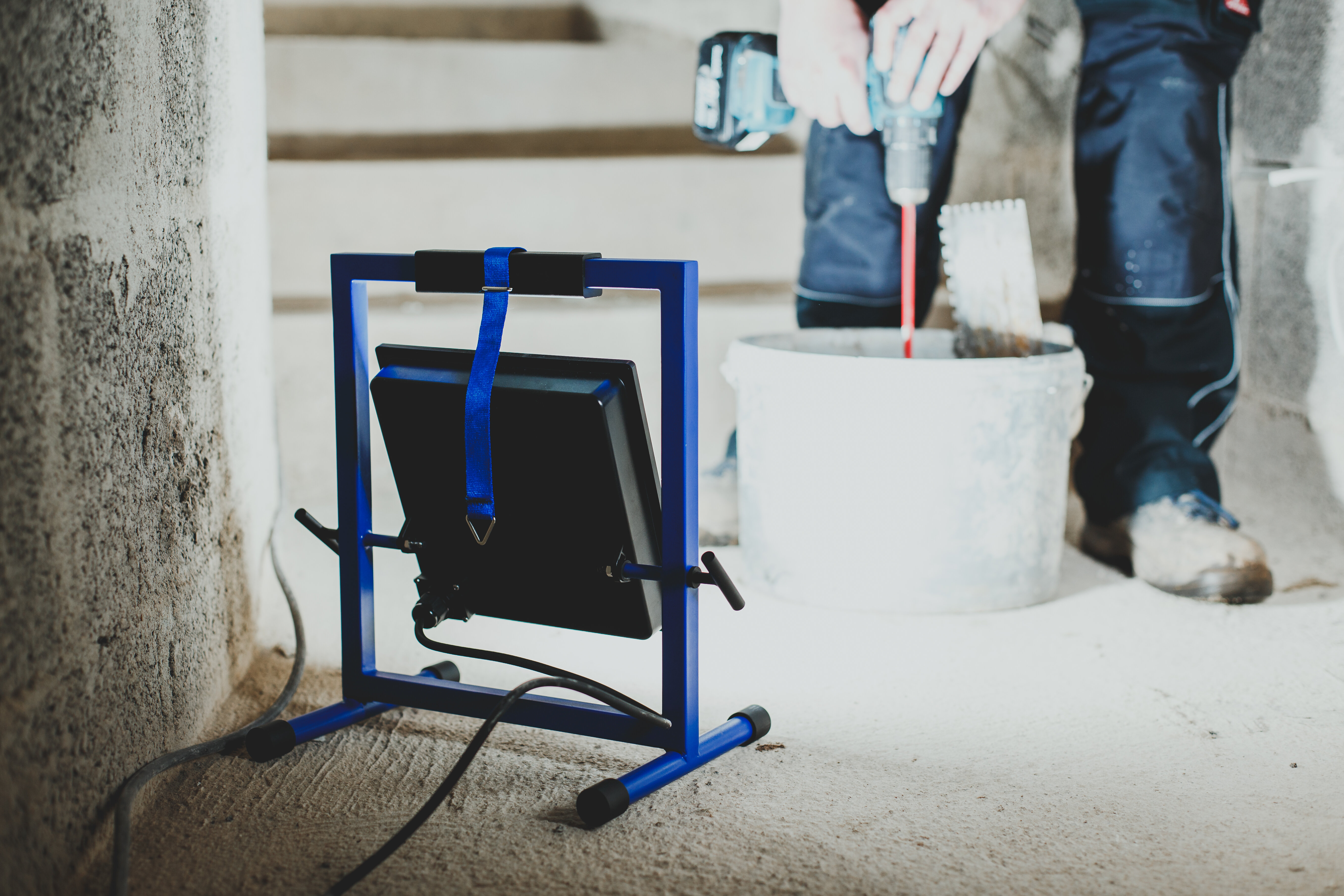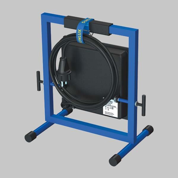 - BEAM LED-Strahler in hochwertigem Gehäuse mit opaler Abdeckung aus Polycarbonat, Rahmen aus pulverbeschichtetem Stahlprofil, 3 m Zuleitung H07RN-F (schwarz) mit Netzstecker, Ständerfüße und Griff aus Kunststoff, Klettband für Kabelaufwicklung inkl. Öse zur Aufhängung des Strahlers