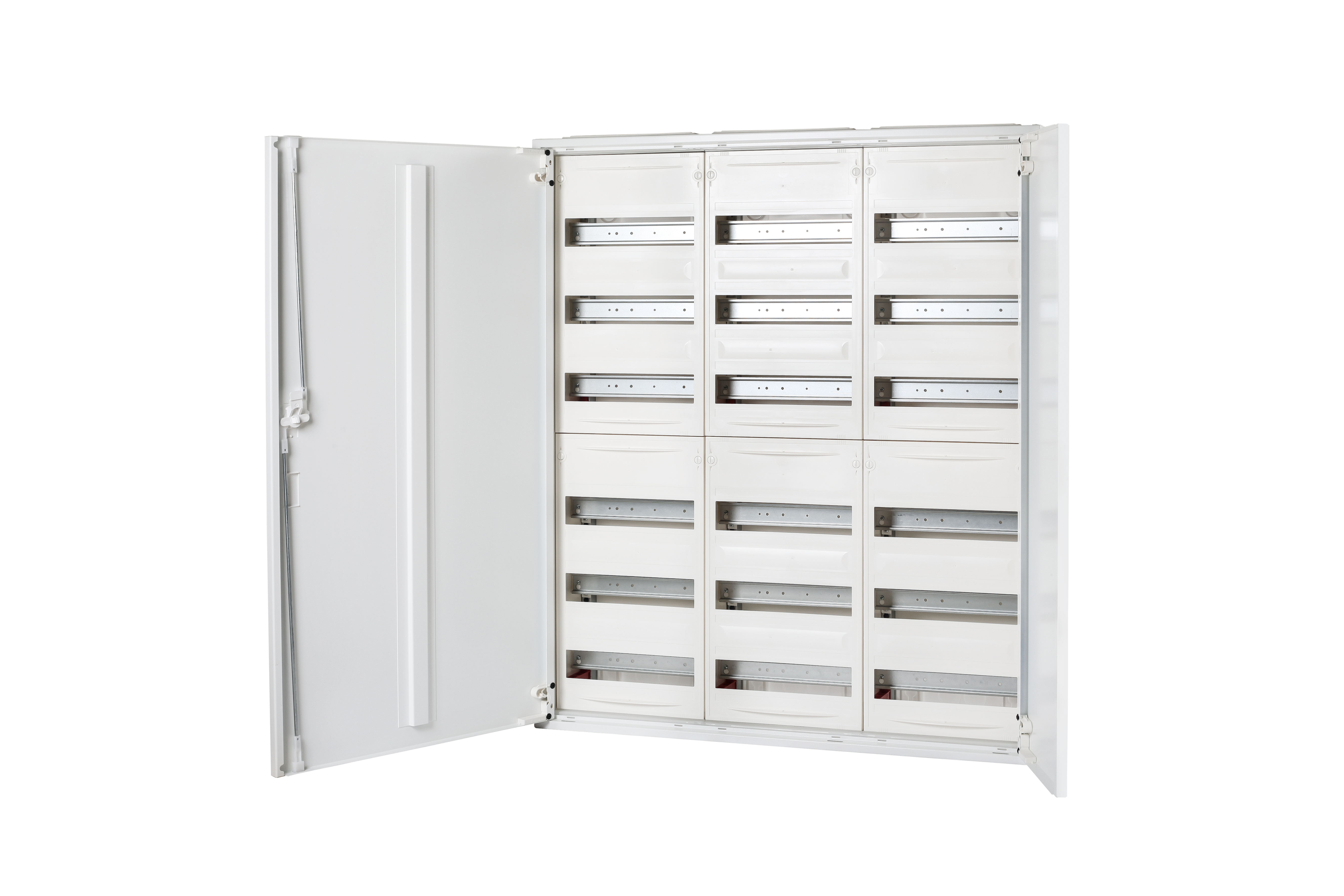 VS 3-6; 3 vakken, 6 rijen, 216 modules; Verdeelkast; Ontwerp als veldverdeler; Kastdiepte incl. bevestigingsbeugel 210 mm; Incl. 1 x ZSSKN34 en 1x ZSSKPE34 insteekklem per veld; Materiaal: plaatstaal, hoogwaardige poedercoating